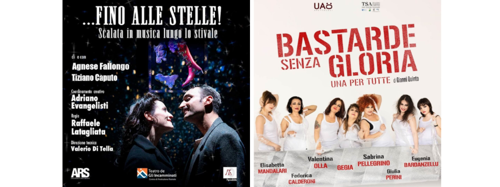 Clicca qui per accedere alla DOPPIA PROPOSTA= DOPPIA PROMOZIONE  ESCLUSIVO PACCHETTO "SPRING NEW ENTRY"!  1 biglietto per FINO ALLE STELLE + 1 biglietto per BASTARDE SENZA GLORIA  a € 35